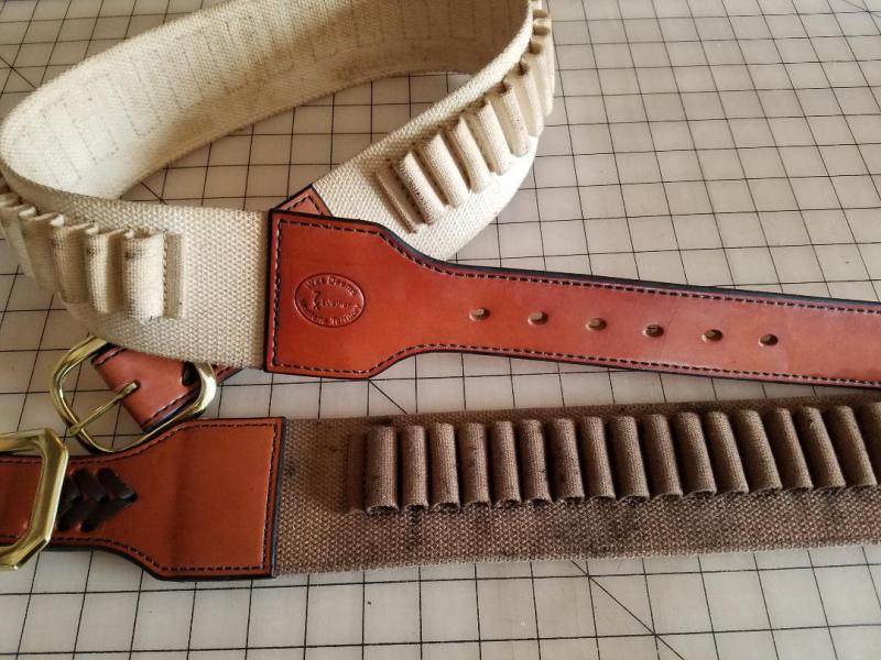 I Make my Sharps cartridge belts from Heavy 12oz. American Made Saddle Skirting, then line them with heavy chap.